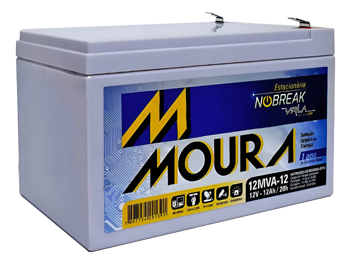 A Bateria VRLA Moura 12MVA-12 é ideal para fornecer energia confiável e duradoura em várias aplicações críticas. Com tecnologia AGM, é livre de manutenção e possui segurança aprimorada.