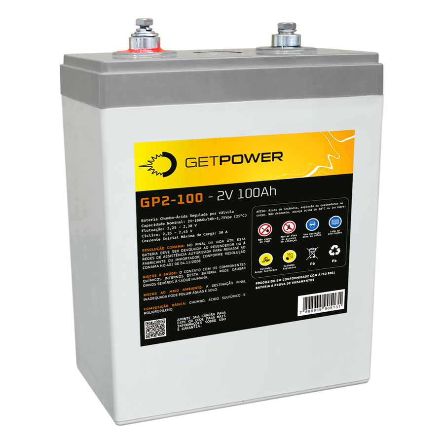 A Bateria Chumbo-Ácida Estacionária VRLA da Série Getpower GP 2-100, uma solução de energia confiável e de alta performance para uma variedade de aplicações. Equipada com a avançada tecnologia AGM (Absorbed Glass Mat), esta bateria se destaca por seu eletrólito absorvido em manta de microfibra de vidro, oferecendo uma operação segura e eficiente, regulada por válvula (VRLA – Valve Regulated Lead Acid). Com uma eficiência de recombinação de gases superior a 99%, a Bateria Getpower GP/AGM-2V redefine os padrões de eficiência e confiabilidade.