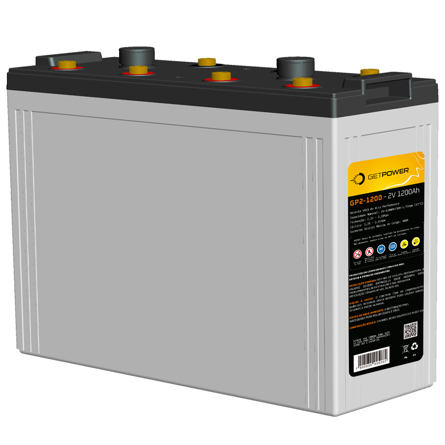 A Bateria Chumbo-Ácida Estacionária VRLA da Série Getpower GP 2-1200, uma solução de energia confiável e de alta performance para uma variedade de aplicações. Equipada com a avançada tecnologia AGM (Absorbed Glass Mat), esta bateria se destaca por seu eletrólito absorvido em manta de microfibra de vidro, oferecendo uma operação segura e eficiente, regulada por válvula (VRLA – Valve Regulated Lead Acid). Com uma eficiência de recombinação de gases superior a 99%, a Bateria Getpower GP/AGM-2V redefine os padrões de eficiência e confiabilidade.