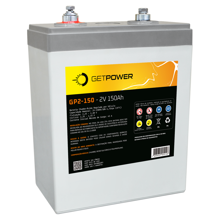 A Bateria Chumbo-Ácida Estacionária VRLA da Série Getpower GP 2-150, uma solução de energia confiável e de alta performance para uma variedade de aplicações. Equipada com a avançada tecnologia AGM (Absorbed Glass Mat), esta bateria se destaca por seu eletrólito absorvido em manta de microfibra de vidro, oferecendo uma operação segura e eficiente, regulada por válvula (VRLA – Valve Regulated Lead Acid). Com uma eficiência de recombinação de gases superior a 99%, a Bateria Getpower GP/AGM-2V redefine os padrões de eficiência e confiabilidade.