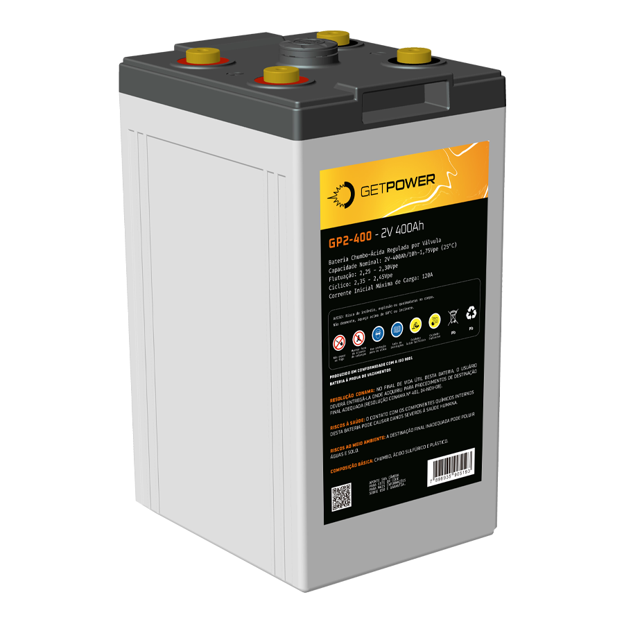 A Bateria Chumbo-Ácida Estacionária VRLA da Série Getpower GP 2-400, uma solução de energia confiável e de alta performance para uma variedade de aplicações. Equipada com a avançada tecnologia AGM (Absorbed Glass Mat), esta bateria se destaca por seu eletrólito absorvido em manta de microfibra de vidro, oferecendo uma operação segura e eficiente, regulada por válvula (VRLA – Valve Regulated Lead Acid). Com uma eficiência de recombinação de gases superior a 99%, a Bateria Getpower GP/AGM-2V redefine os padrões de eficiência e confiabilidade.