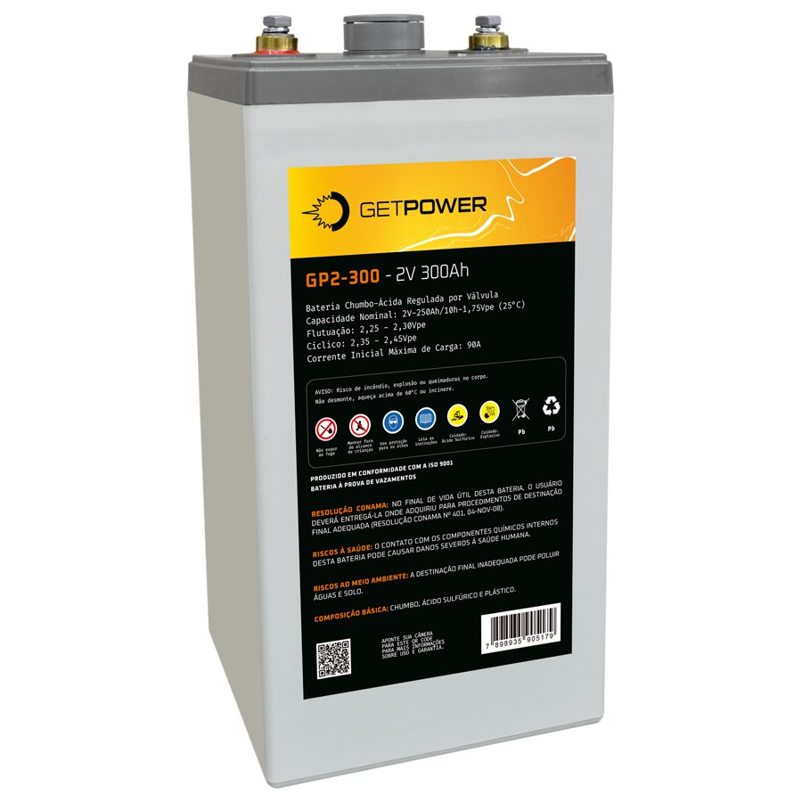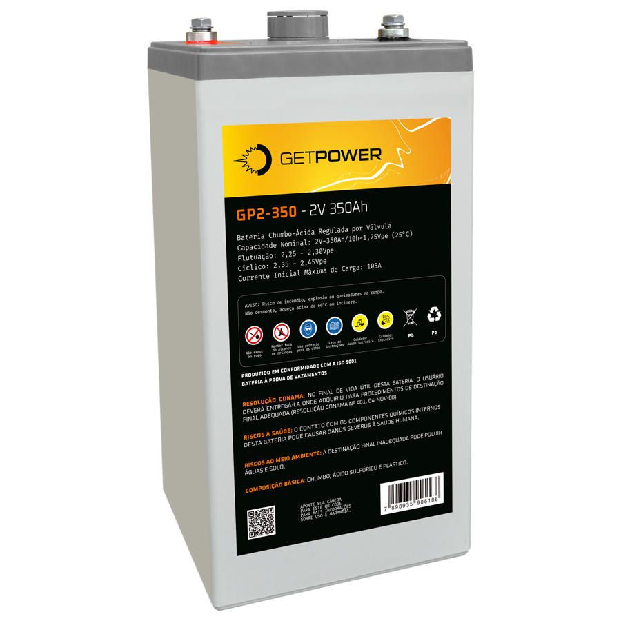 A Bateria Chumbo-Ácida Estacionária VRLA da Série Getpower GP 2-350, uma solução de energia confiável e de alta performance para uma variedade de aplicações. Equipada com a avançada tecnologia AGM (Absorbed Glass Mat), esta bateria se destaca por seu eletrólito absorvido em manta de microfibra de vidro, oferecendo uma operação segura e eficiente, regulada por válvula (VRLA – Valve Regulated Lead Acid). Com uma eficiência de recombinação de gases superior a 99%, a Bateria Getpower GP/AGM-2V redefine os padrões de eficiência e confiabilidade.