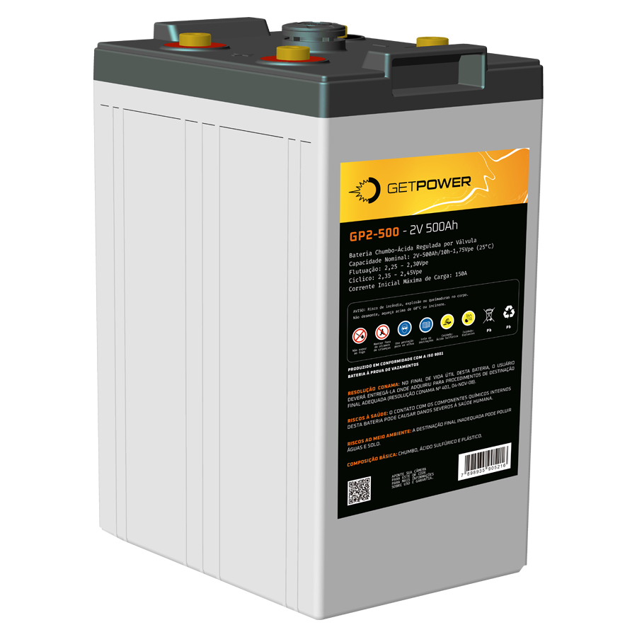 A Bateria Chumbo-Ácida Estacionária VRLA da Série Getpower GP 2-500, uma solução de energia confiável e de alta performance para uma variedade de aplicações. Equipada com a avançada tecnologia AGM (Absorbed Glass Mat), esta bateria se destaca por seu eletrólito absorvido em manta de microfibra de vidro, oferecendo uma operação segura e eficiente, regulada por válvula (VRLA – Valve Regulated Lead Acid). Com uma eficiência de recombinação de gases superior a 99%, a Bateria Getpower GP/AGM-2V redefine os padrões de eficiência e confiabilidade.