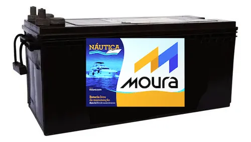 Bateria Náutica Moura Boat 150Ah – 12V – 12MB150 – Livre de Manutenção Obs: Desconto de R$100,00 para cada bateria usada similar devolvida Segurança e Durabilidade Em uma embarcação, as baterias podem ter duas funções distintas: partida e serviço. A primeira delas é utilizada para dar a partida no motor da embarcação, e é projetada para fornecer uma alta corrente durante um curto intervalo de tempo; trata-se do mesmo tipo de bateria utilizado para partir o motor de um acê e sua família. Esta nova linha de baterias é o resultado do constante investimento em pesquisa, associado aos mais de 45 anos de experiência e pioneirismo da Moura em desenvolvimento e tropicalização de tecnologia de baterias, e pode ser utilizada tanto em regime de serviço como em partida, proporcionando alta durabilidade e desempenho em ambas as aplicações. Já a bateria de serviço é utilizada para alimentar os equipamentos e utilidades elétricas da embarcação, tais como iluminação, rádio, GPS, radar, microondas, refrigerador, bombas e outros itens de consumo, normalmente por intermédio de um inversor. Esse tipo de bateria está sendo fabricado pela Moura pela primeira vez no Brasil. As baterias da linha Moura BOAT oferecem alto desempenho e durabilidade em aplicações náuticas, proporcionando segurança para você e sua família. Sistema Anti-Explosão Maior segurança Grades Fundidas com Contorno Contínuo Maior resistência à ciclagem constante e profunda Maior resistência a altas temperaturas Placas Espessas com Sistema Dual Press Maior autonomia e desempenho Maior durabilidade Separadores com Fibras Acrílicas Orientadas Maior resistência à vibração Maior durabilidade Tecnologia D2RC Maior tolerância a longos períodos sem recarga Garantia A BOAT é uma bateria desenvolvida exclusivamente para uso náutico, o que garante a maior durabilidade, operação em posições inclinadas e retenção seletiva de gases ácidos, além de dispensar a manutenção. O Consumidor conta ainda com um produto que oferece um (01) ano de garantia, uma rede própria de assistência técnica em todo o País e o atendimento às exigências ambientais n° 257/99 e 263/99 do Conselho Nacional do Meio Ambiente (CONAMA). Características Gerais – Específica para uso náutico: maior durabilidade – Operação em posições inclinadas (roll over test) – Não emissão de gases ácidos – Livre de manutenção – Maior resistência a altas temperaturas e a condições severas de uso – Maior densidade energética – Resistência à vibração – Terminais universais: facilidade na instalação – Garantia de 1 ano – Rede própria de assistência técnica cobrindo todo território nacional – Alças para transporte: praticidade – Conformidade com as resoluções do CONAMA (exigências ambientais) Especificações Técnicas: Tensão: 12V C20: 150Ah RC 25: 130 min Dimensões ( Comp x Larg x Alt ): 512 x 211 x 233mm Peso: 43,8 Kg Fonte: www.moura.com.br