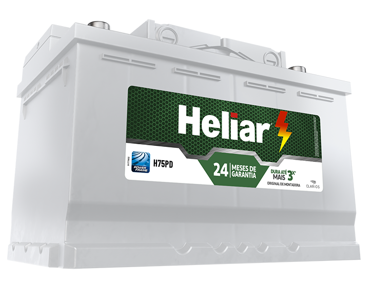 Bateria Heliar 75Ah – 12V – H75PD ( Cx. Alta ) – Original de Montadora ( Antiga SL75PD )