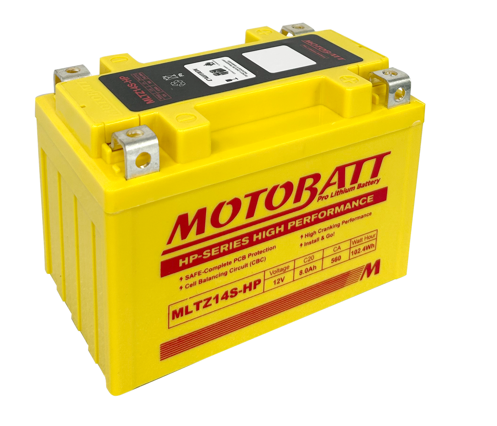 A Motobatt MLTZ14S-HP é uma bateria de lítio de alta tecnologia, desenvolvida para proporcionar máxima potência, maior vida útil e segurança aprimorada. Certificada pela UL, atende aos mais altos padrões de qualidade, garantindo um desempenho superior para motos de alta cilindrada e aplicações exigentes.